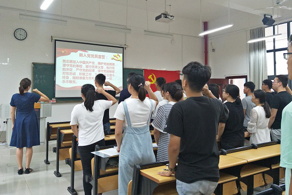 本次党支部大会共有85名党员出席,进行入党转正发言的预备党员共18名,进行入党陈述的发展对象共24名。大会流程紧凑有序,首先进行的是全体党员奏唱国际歌,接着是预备党员的转正发言和新发展党员的入党陈述。他们讲述了在老师、入党介绍人、支部老党员的引导和带领下,积极学习党的新精神,坚定了入党目标,提高了自身的政治素养的成长历程。经全体党员无记名投票,党员代表发言后,18名预备党员都顺利转正,24名发展对象也正式成为新一批预备党员。老师带领大家进行了入党宣誓,在庄严的誓词中,党员们都热血澎湃,表明了永远追随党,永不叛党的决心。