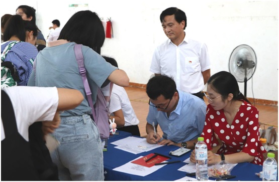 新生班主任及助理热情为新同学办理入学手续