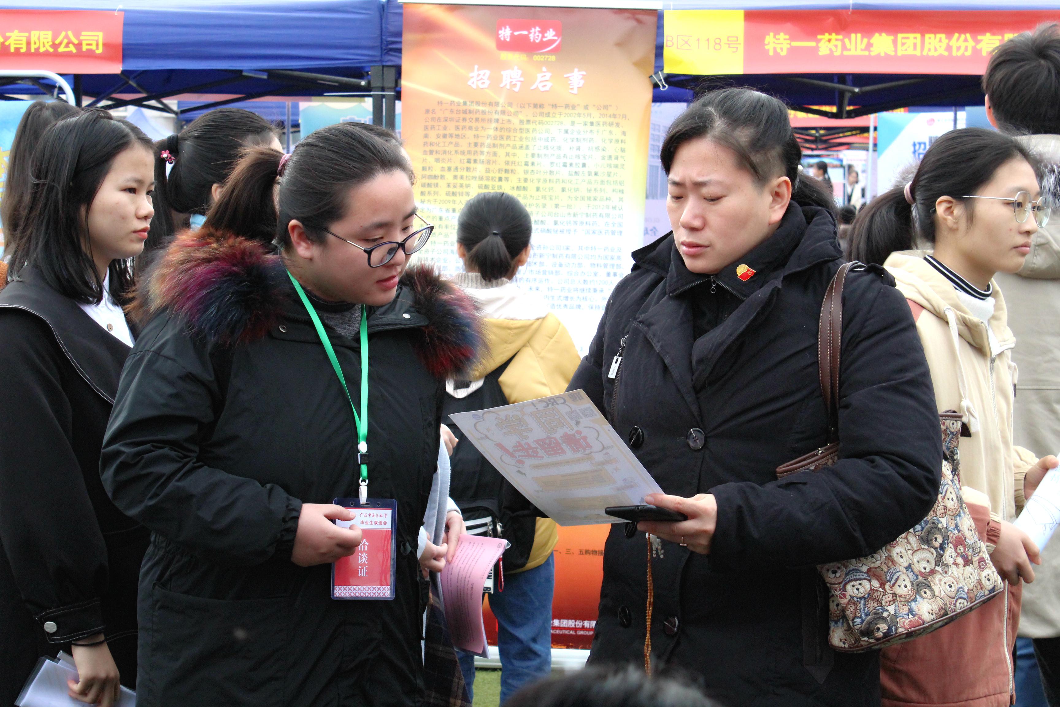 12月23日,药学院组织520名毕业生参加Beat365仙葫校区承办的广西高校中医药类毕业生就业“双选会”活动。药学院蒋林、李豫萍、凌勇威、孙慧玲、吴玉峰等十余名领导、老师及毕业班辅导员、班主任在会场中忙碌穿梭为毕业生们开展就业推荐。当日,药学院中药学、药学、食品类等专业30多名毕业生在“双选会”上现场与用人单位签订了就业协议书,200余名毕业生与用人单位达成了就业意向。