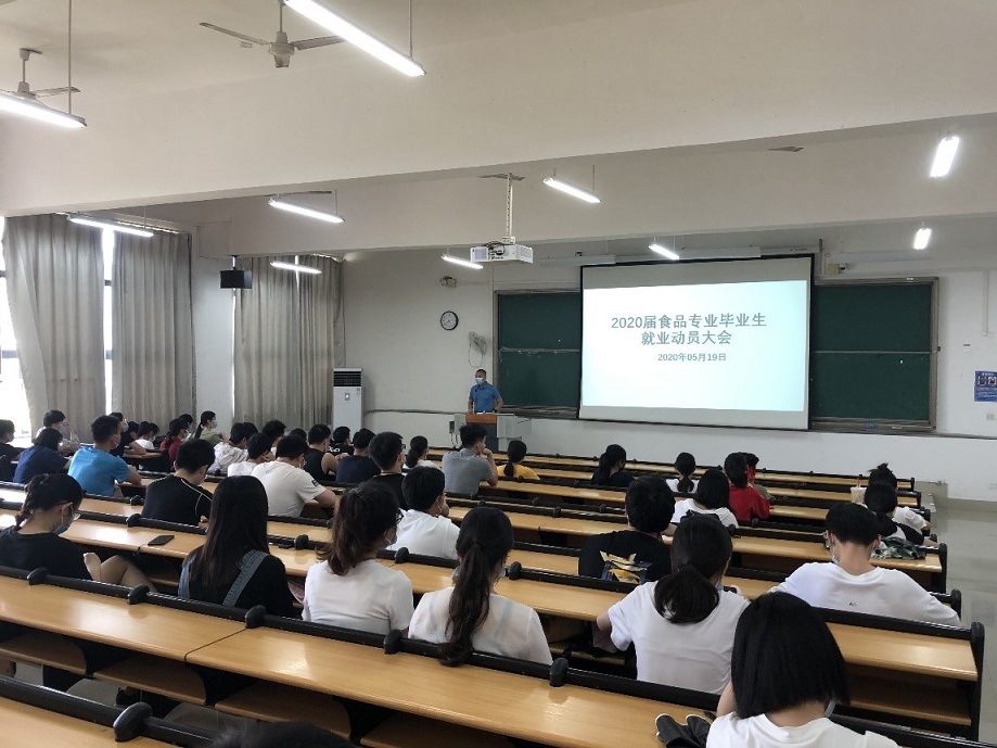 为了让本科毕业生明析当前严峻的就业形势,把握就业机会,药学院食品系于5月19日下午在仙葫校区教学楼,召开了2020届食品专业本科毕业生就业动员大会,专门为毕业生们介绍了14家对口企业,并提供了38个工作岗位。药学院常务副院长赵立春、食品系教师以及全体2020届食品专业本科毕业生参加会议。食品系主任谭强教授主持本次大会。