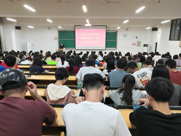 9月24日晚上,公共卫生与管理学院在仙葫校区教学楼1-203、1-205召开2020年国庆节、中秋节假前安全教育大会,本次会议由学院学生工作办公室主任宋南、院团委书记鲁蕴律分别主持,学院全体学生参加本次会议。