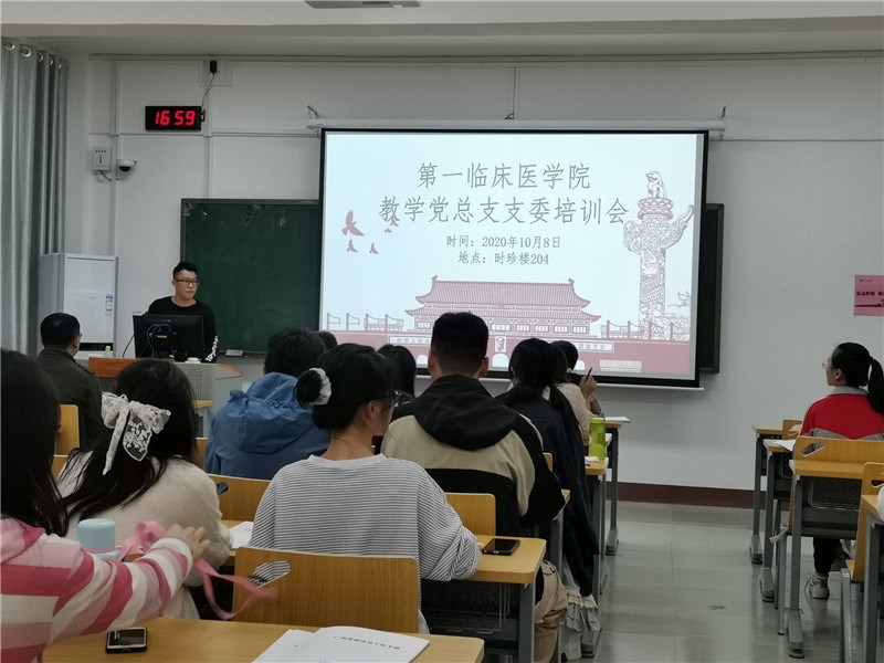 10月8日下午,第一临床医学院教学党总支在明秀校区时珍楼204教室,开展了学生党支部支委培训。教学党总支书记罗之瑜、支部指导老师、新当选学生党支部支委、小组长共28人参加培训。