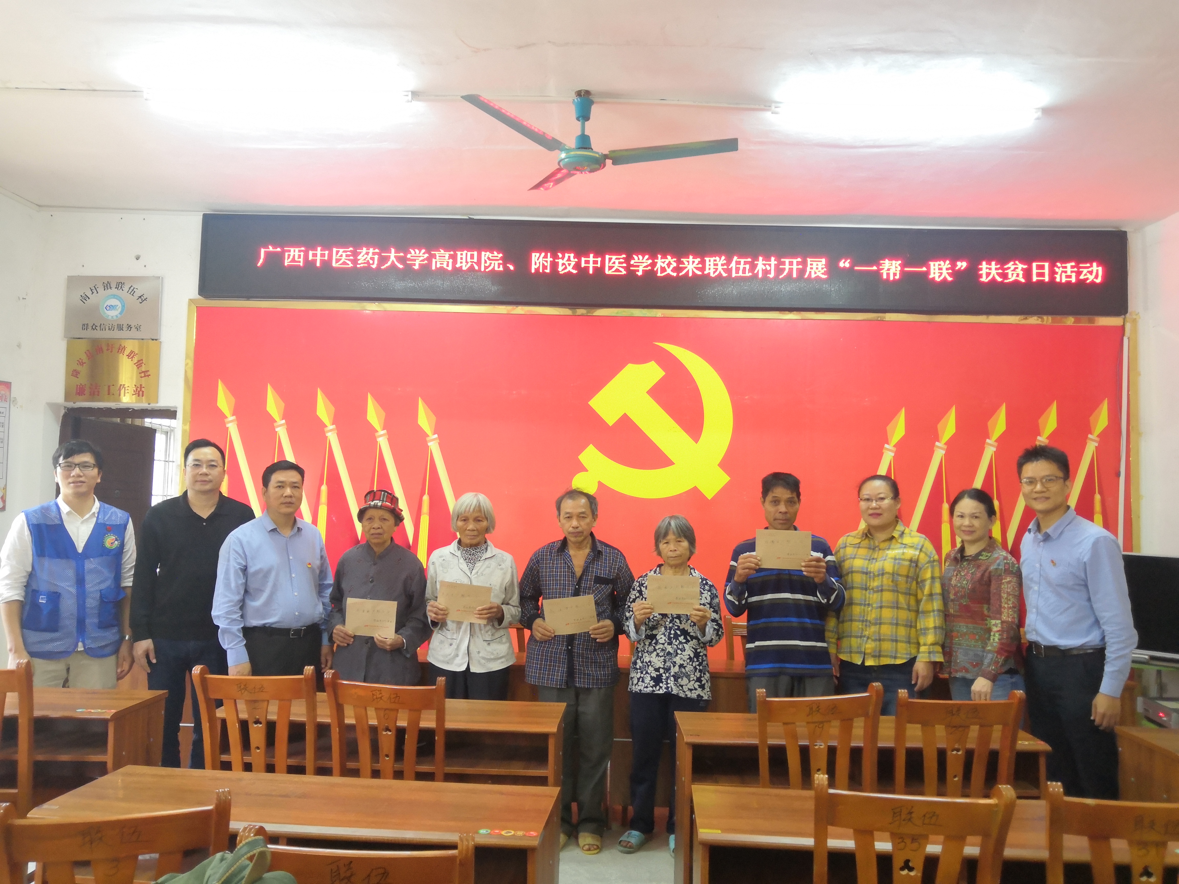 10月16日,高职院、附设中医学校党委书记蒋子华一行6人,到隆安县南圩镇联伍村开展“一帮一联”扶贫日活动。