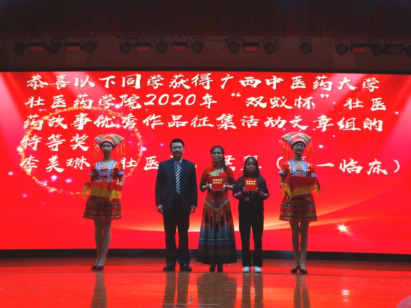 晚会还进行了“双蚁杯”壮医药故事优秀作品大赛、壮医药知识竞赛的颁奖仪式。