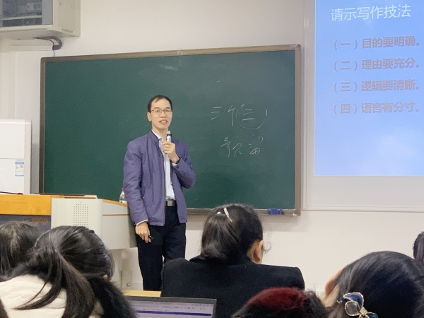 12月7日,护理学院党委党支部书记、委员培训班第二讲在自诚C410开讲。学校校长办公室副主任蓝开宝应邀做《行政公文写作与新闻稿的撰写》专题讲座,护理学院全体教职工和部分学生代表参加此次培训,护理学院党委书记、院长吴彬主持。