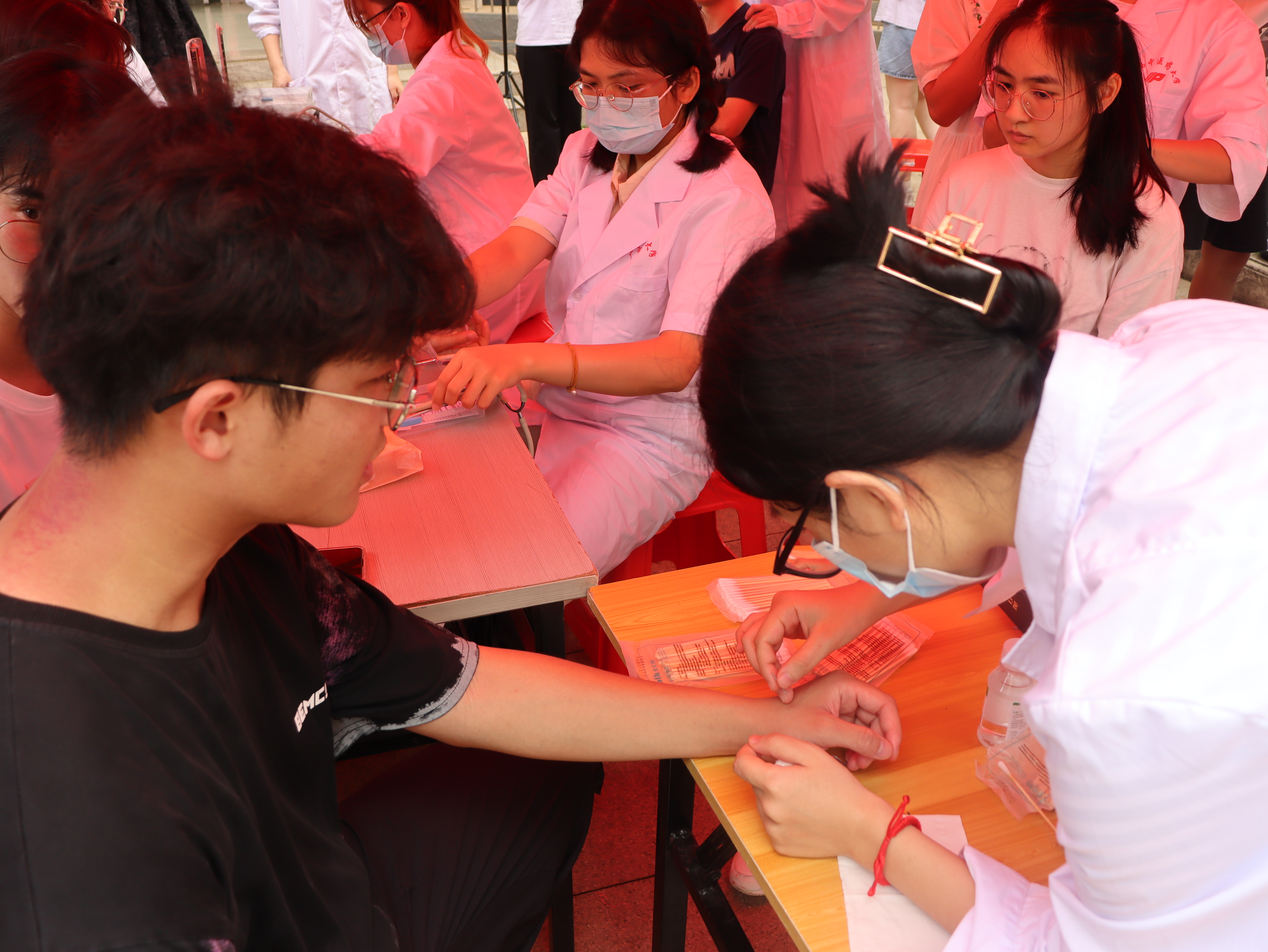 本次活动包含了艾灸、推拿、量血压、刮痧,针刺等中医特色理疗服务。活动期间,志愿者们灵活地运用自身所学知识为前来体验的同学进行了相应的理疗服务。量血压组的志愿者们提供了测量血压服务并耐心细致地向前来体验的同学们和阿姨讲解血压的有关知识;推拿组的志愿者们提供了肩颈部和背部的手法按摩服务,有效地缓解了体验者的疲劳;艾灸组的志愿者们提供了艾灸和针刺服务,针和灸的完美结合突出了针推专业的特色;刮痧组的志愿者们则为体验者提供了颈部的刮痧服务,改善了局部的血液循环。活动过程中,志愿者们各司其职,认真负责,和蔼亲切,一举一动皆展示了针推学子的风采。