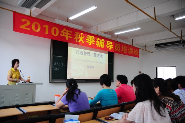 8月25日,赛恩斯新医药学院2010年秋季辅导员学习班在阶梯602教室举行。赛恩斯新医药学院常务副院长谢丽莎、党总支书记徐方明、学工部主任叶绘晟对全体辅导员及学科办老师进行了培训。