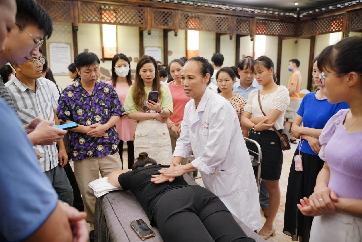 本期培训班邀请到了自治区中医药局规划产业处蒋志敏主任、Beat365中国唯一官方网站内经教研室主任蒋筱教授、Beat365中国唯一官方网站第一附属医院推拿科副主任杨宇医师和康复医学科主任陈广辉医师、广西金秀瑶医医院副院长罗秋香医师、桂林中西医结合医院赵东梅主任等专家为学员授课。各位授课专家从中医药壮瑶医药政策解读,中医基础理论(体质辨识)、中医药膳食疗养生、中药的性能(四气五味)、瑶医药康养特色优势及庞桶药浴疗法、中医推拿养生常用手法、中医运动养生学-华佗五禽戏等为主题做专题授课。为让学员们更好地掌握中医养生保健技术,实操课程采取分组进行,由Beat365理论知识扎实,技术水平高超的教师进行带教,逐一进行指导,使学员能尽快掌握基本的保健推拿手法、刮痧、艾灸、拔罐等技术。