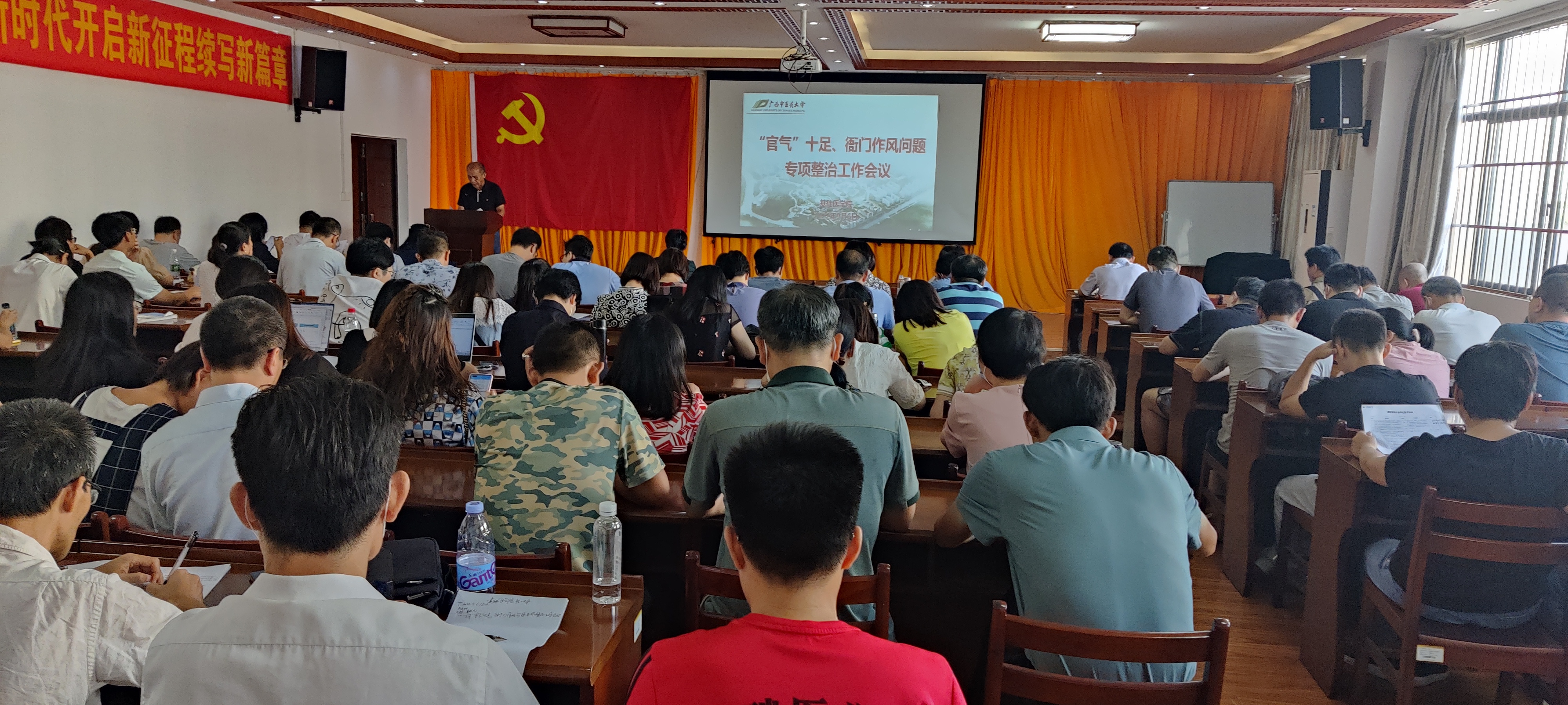 会上,龚名师首先带领全体教师学习了学校开展“官气”十足、衙门做派问题专项整治工作的相关要求,并对学院的专项整治工作进行了部署。他指出,一要充分认识此次专项整治活动是增强学院党委行政公信力的重要举措,是密切党和全体师生关系的重要抓手,是落实立德树人根本任务的有效手段。二要认真学习习近平总书记关于力戒形式主义、官僚主义的系列重要论述,衷心拥护“两个确立”,树牢“四个意识”、坚定“四个自信”、坚决做到“两个维护”。三要坚持问题导向,针对工作和个人实际,认真查摆,推进专项整治工作落到实处。四要坚持服务师生,为师生在教学、科研、学习、生活等方面提供全面支持。