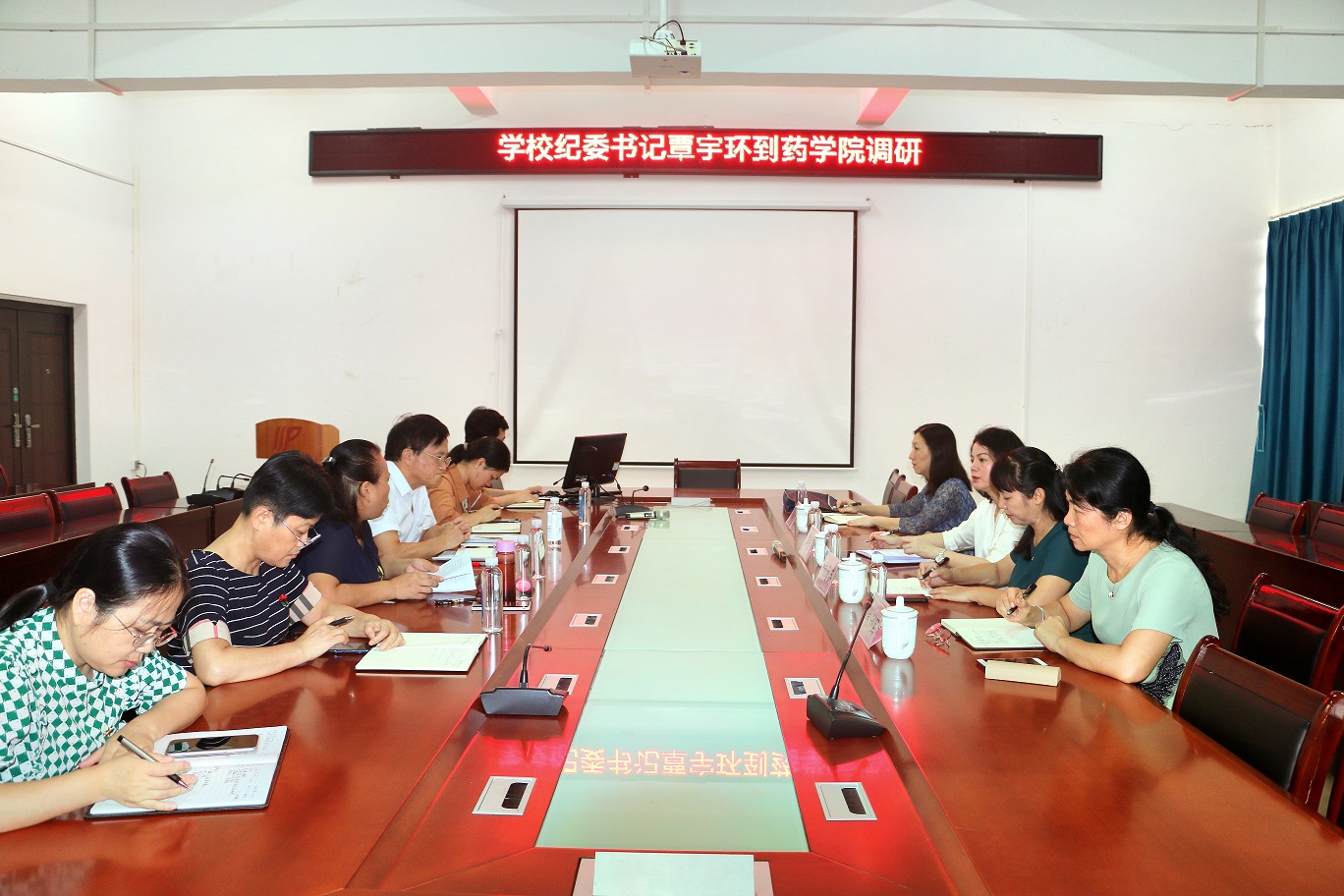 9月14日上午,学校纪委书中记覃一行4人到药学院调研。药学院党政领导班子参加了调研座谈会。 药学院党委书记蒋林主持会议。