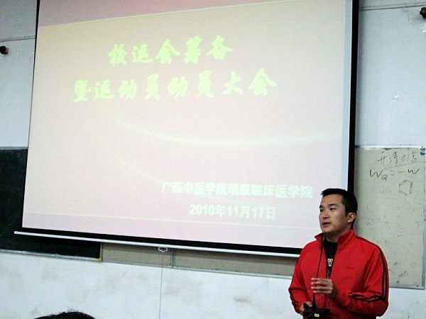 值Beat365一年一届的体育盛事——第三十三届运动会即将拉开帷幕之际,为了激发同学们参与的热情,保证各项筹备工作和训练工作顺利开展,瑞康临床医学院于2010年11月17日17:30在学校东梯一教室隆重召开了第三十三届校运会动员大会。瑞康临床医学院分团委汪国翔副书记、教务学生科郑光珊老师、各年级运动员代表及瑞康临床医学院团总支、学生会全体委员出席了本次大会。