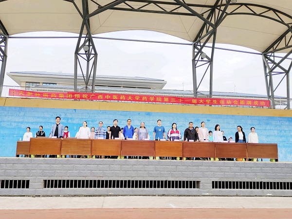 近日,药学院在仙葫校区田径场举办了第三十一届“大参林”杯大学生田径运动会并取得圆满成功。开幕式上,药学院党政领导、辅导员、班主任及校学工、团委、体育部、兄弟学院学生代表二十余人在现场为运动会的顺利开展鼓掌助威。
