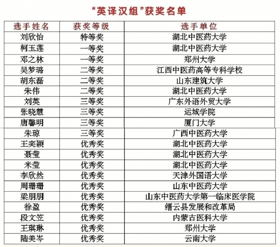 朱琼荣获“英译汉组”三等奖(图片来源:湖北中医药大学外国语学院官网)