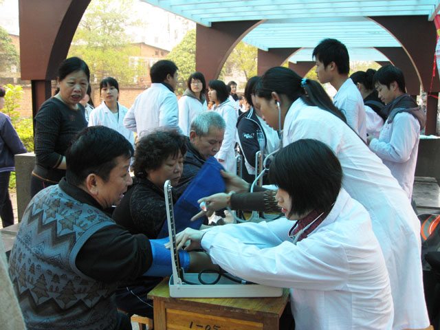 为进一步弘扬雷锋精神,促进党建带团建工作,推进创先争优活动,2011年3月20日,基础医学院学生第二党支部联合Beat365针灸协会在南宁市衡阳花园举行了以“为人民服务”为主题的义诊活动。