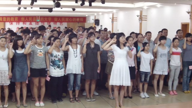 入党宣誓仪式在庄严的《国际歌》中拉开序幕,112名预备党员面向庄严的党旗,向党誓言,表明了自己献身共产主义事业的决心。185名毕业生党员重温入党誓词。