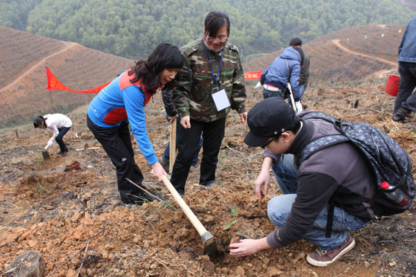 为贯彻落实自治区第十次党代会关于深入实施 “绿满八桂”造林绿化工程的有关精神,积极响应团区委关于开展“开展百万青少年造林绿化行动”的号召, 2012年3月9日,第34个植树节到来之际,在瑞康临床医学院党委副书记、纪委书记、教务学生党总支书记陈日兰教授带领下,团委副书记叶修廷、刘丽组织青年团员来到高峰林场长客分场,参加了区直机关团员青年“绿满八桂,绿动青春”造林绿化植树活动。