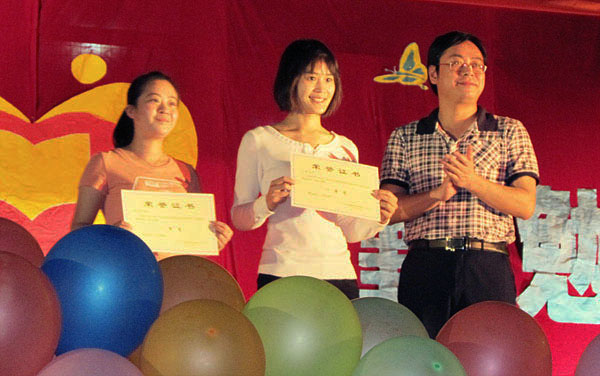 赛院叶绘晟副院长为“助学政策,助我成才”征文比赛一等奖获得者颁奖