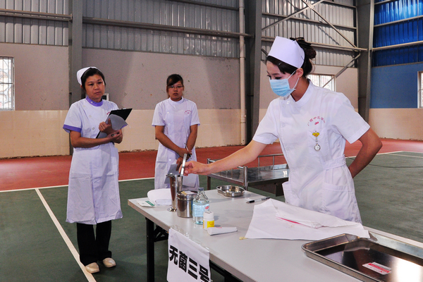 为了提高护理专业学生的护理操作技能水平,强化专业特色,增强学生的实践动手能力,促进护理人才的培养和护理专业的发展。2012年5月15日,赛恩斯新医药学院第五届护理知识技能操作大赛在风雨球馆举行。