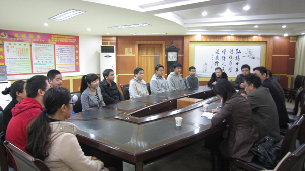 徐方明书记分别听取了各实习医院领导介绍各自医院的基本情况以及实习生的教学及管理等情况,同时,还听取了实习生就有关实习中学习及生活情况的汇报。他代表赛院感谢四家医院多年来对我院临床实践教学的大力支持,并希望各医院今后继续支持学院教学工作,进一步加强教学医院与学院的交流与合作,共同促进广西中医药教育事业的发展。他对实习生提出了几点希望:一是希望同学们要珍惜这一年实习时间,认真学习;二是希望同学们学会独立思考,将医学理论知识与实践更好地结合,努力提高临床思维能力;三是希望同学们要有不怕苦、不拍累地精神,要善于与老师及患者沟通,努力提升自身素质;四是希望同学们要保重身体,注意安全,能平安、顺利地完成实习任务;五是希望同学们正确处理好实习、就业与考研的关系,转变观念,积极进取,为实现自身价值而不断奋斗。