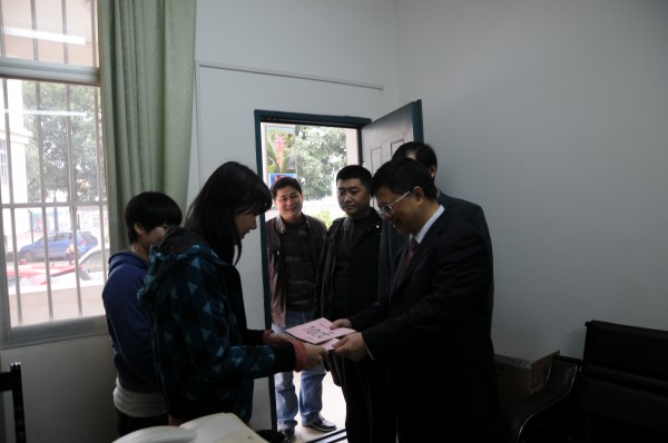 2013121上午11时,直属党委韦艾凌书记、何天富院长、覃振林副书记等一行领导来到壮医药学院慰问困难学生党员。