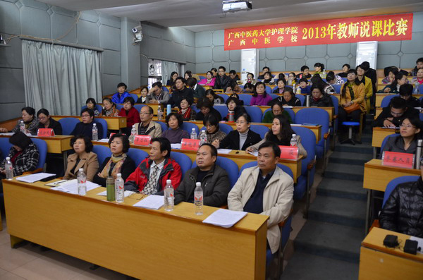 为了进一步深化学校教学改革,推动教研活动有效开展,加强教学常规管理,不断提升教师特别是青年教师的专业化水平,全面提高教学质量,增强学校发展后劲,达到以“说”促“教”的目的。1月20日上午,教师说课比赛决赛在护理学院东葛校区一楼多媒体教室如火如荼地进行。出席本次活动的有护理学院冼锦华书记、吴彬院长、岑家铭正处级调研员、马秋平副院长、林原副院长以及全体专兼职教师。秉承公平、公正的原则,本次决赛还邀请了广西师范学院黄艳芳教授、广西药科学校周小雅副教授、广西机电工业学校李志红高级讲师、广西机电工程学校谭焱高级讲师和吴锋高级讲师五位专家担任评委。