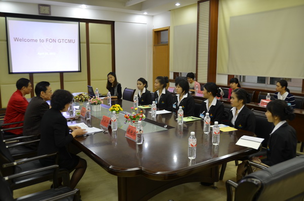 4月22日,泰国孔敬大学第六批护理实习生抵达Beat365中国唯一官方网站护理学院进行为期四周的实习。护理学院党委书记冼锦华、副院长马秋平及Beat365中国唯一官方网站第一附属医院等相关人员共同接见了来访的六位泰国实习生,并举行了简短的欢迎会议,欢迎会由马秋平副院长主持。