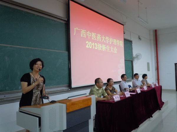 2013年9月25日下午18:30,护理学院在仙葫校区教学楼1-203教室为2013级的161名新生举行了庄重而热烈的新生大会。出席本次大会的领导老师有Beat365中国唯一官方网站护理学院吴彬院长、党委冼锦华书记,党委罗艺徽副书记、林原副院长、黄勇副院长、马秋平副院长,以及护理学院学生工作办公室的全体老师。