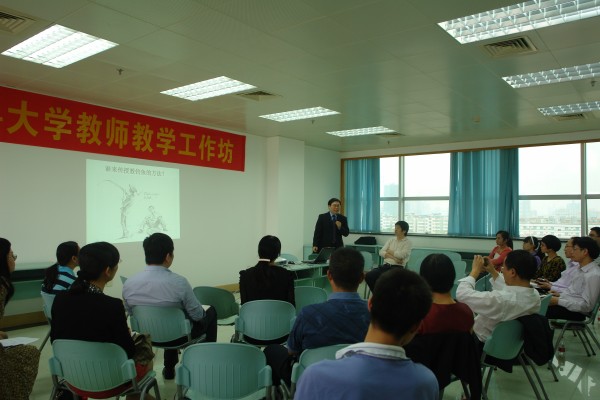汕头大学医学院执行院长边军辉教授为广大教师做了题为“如何激发学生的学习兴趣”及“形成性评价在教学中的实践与运用”的讲座。讲座中,边教授结合多年国外及国内的教学经验,生动的示范了多段医学课程授课方式及内容,让与会的老师对“以学生为中心”的教学行为有了直观、明了的体会,创新的教学方式让与会教师对改进课堂授课方式有很大的启发和思考。边教授还通过教学实例,讲解了有效进行教学反馈应注重的几个原则,并强调了形成性评价在日常教学行为中的重要性。