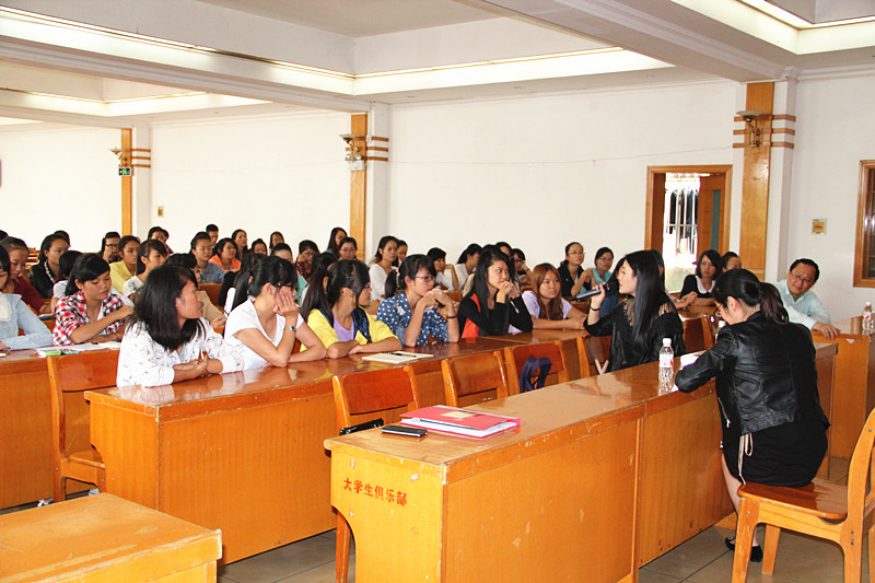 见面会于中午13点在大学生俱乐部正式开始,2012级和2013级 百丽雅订单班全体同学以及部分医疗美容技术普通班的同学参加了见面会。会议由高职处副处长、高职院副院长杨仕权主持。会上,胡海妹经理首先通过宣传短片的 形式介绍了百丽雅公司的概况和发展历程,接着叶青总经理从自身的经历切入,更深入、全面地介绍了百丽雅作为一家全国乃至全球知名的美容企业,无论是对顾客 还是员工,处处都体现“以人为本,大爱先行”的企业文化。叶总风趣幽默的演讲获得了同学们的阵阵掌声。最后,叶总二人走下讲台,与学生近距离互动交流,并 耐心地回答同学们的提问。