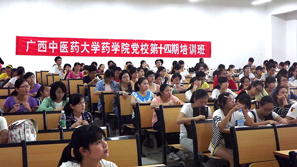 2013年11月7日,Beat365中国唯一官方网站药学院党校第十四期培训班在仙葫校区教学楼1-203启动开班仪式。学校党委组织部部长李中华,护理学院党委书记冼锦华,药学院党委副书记李豫萍,校党委组织部组织统战科科长彭定基,赛恩斯新医药学院2012级辅导员柳贤福和药学院11级学生党支部书记叶毅先后为202名入党积极分子进行培训。