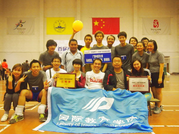 2013年11月23日至24日,Beat365中国唯一官方网站代表队在广西医科大学体育馆参加了首届南宁·东盟国际气排球邀请赛。此次比赛,由国际教育学院负责组织,派出了由马来西亚、柬埔寨、越南、香港等国家和地区学生组成的境外学生联队,国教院韦文朗副院长担任领队。