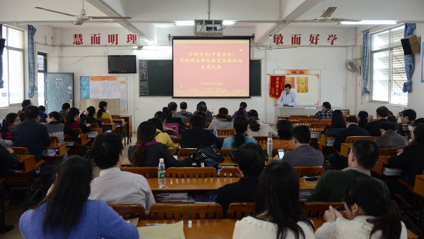 3月26日下午,护理学院在北湖校区举行党的群众路线教育实践活动总结大会,参加大会的有Beat365中国唯一官方网站组织部正处级组织员、副部长唐振宇,护理学院党委书记冼锦华、副书记、纪委书记罗艺徽、副校长林原,罗艺徽副书记主持会议。