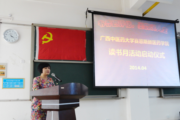 启动仪式上杜惠娟副院长从读书月开展的意义,读书对提高个人素质的作用以及如何引导学生多读书等方面进行了动员。据悉,本届读书月以“书香迎评估,墨韵润人生”为主题,将开展读者信息素质问卷调查、文化电影周、数据库专题讲座、幸运读者及优秀读者评选等丰富多彩的活动。读书月活动的开展目的在于引导和鼓励大学生走进图书馆,与书为友,养成多读书,读好书的良好习惯;在阅读中提高内心修养,传承中医药文化,传递正能量,强化社会责任,建设和谐校园。