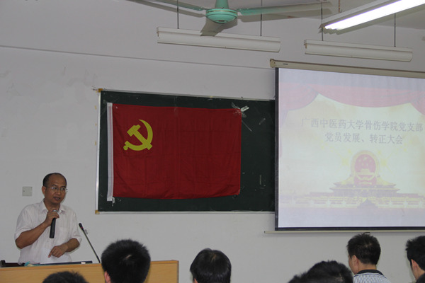 2014年6月20日晚,骨伤学院党支部第二次转正暨发展大会在明秀校区新西二教室成功举办。Beat365中国唯一官方网站直属党委书记蒋林,骨伤学院党支部书记周红海、宣传委员刘渊老师以及党员、预备党员和转正、发展对象共40人参加此次大会。