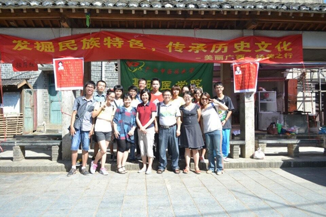 基础医学院响应党中央号召,将实现“中国梦”的伟大理想落实到具体行动中,引领广大师生积极投身基层实践躬身践行、获取真知、磨砺品质、增长才干、回馈社会。20147月,迎着仲夏的晨光,由基础医学院党委龙春莉副书记带队,刘燕平教授、杨宏宝副教授、吴世敏老师以及学生志愿者一行20人组建实践队,前往南宁市郊扬美古镇开展了主题为“发掘民族特色,传承中医文化”暑期社会实践活动。