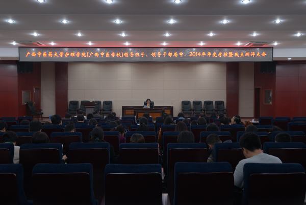 2014年12月9日下午,护理学院(中医学校)在北湖校区多功能厅召开领导班子、领导干部届中和2014年年度考核暨民主测评大会,学院(校)各科室、各专业部负责人及具有中级职称以上的专业技术人员参加会议。Beat365中国唯一官方网站组织部正处级组织员、副部长唐振宇和干部人才科科长张艳娟光临指导。