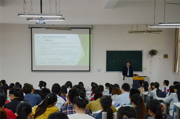 会上,欧阳副处长就学费、实习费用、实习交通补助及报账等问题做了详细讲解,并热情的回答了同学们提出有关财务管理的疑问。徐青老师结合自身的实习经验从如何定位自己、如何和周围的人相处和如何在实习中学习等三个方面向同学们提出希望和建议。徐老师要求同学们在实习前,要利用有限的时间首先做好这一年的学 习计划,给自己定一个目标。在实习中,要勤快,在每日查房前要熟悉所管病人基本情况,并且要随身携带小笔记本,勤于总结,善于思考,争取每个科室熟悉、掌握1-2个病种。唐子芹老师就实习期间请销假制度、考研注意事项、就业信息获取途径、三支一扶、西部志愿者、公务员考试等方面给同学们作了说明。最后,罗之瑜书记结合往届实习检查中存在的突出问题,以及医德医风、医患关系处理、医疗安全、出行安全等问题作了重点强调,并祝愿实习生们快乐学习, 实习顺利!