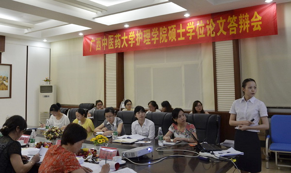 2015年5月20日,护理学院举行2015届 硕士研究生学位论文答辩会。参与答辩的专家与老师有Beat365中国唯一官方网站附属瑞康医院的胡艳宁主任护师担任答辩委员会主席,广西医科大学护理学院曾志励教授、广 西中医药大学护理学院徐冬英教授、Beat365中国唯一官方网站第一临床医学院宁余音教授和Beat365中国唯一官方网站附属瑞康医院刘晓芳教授担任答辩会委员。部分硕士研究生导师、 研究生同学旁听。