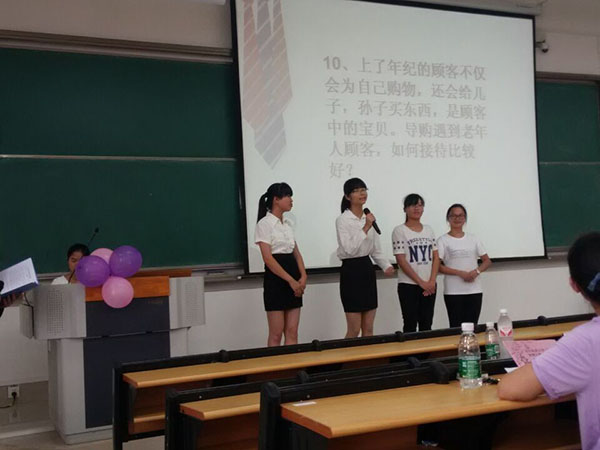 艺术团热情奔放的开场舞拉开了大赛的序幕,紧接着勤工俭学协会播放了协会风采视频。大赛分为风采展示和现场答题两个环节。进入决赛的12支队伍依次上台进行队伍介绍并结合PPT展示自己的风采,然后以抽题的形式进行现场提问。每支队伍的表现都非常出色,展现出了参赛队伍优秀的营销潜能和团队理念,赢得现场评委和观众的阵阵掌声。在所有队伍展示完毕和现场投票后,人力资源部经理陈秋梅对本次大赛进行点评,她首先感谢大家对本次大赛的支持,并且给予了本次大赛很高的评价,同时通过举例子的方式给大家充分展示了优秀的营销理念和机智的营销方法。最终,“win-win”队不负众望夺得本次营销大赛的冠军。