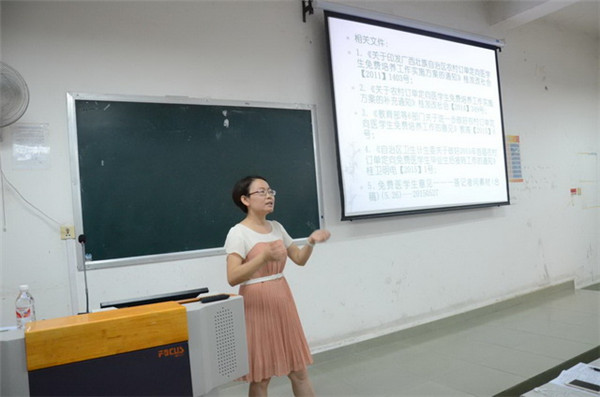 2015年6月16日下午,第一临床医学院中医学(免费医学定向)专业在明秀校区西A三教室召开“中医免费医学定向生相关政策解读座谈会”。Beat365中国唯一官方网站招生就业处叶勇玲副处长、中医定向专业辅导员王佳林老师参加座谈会,全体定向专业同学到场聆听。