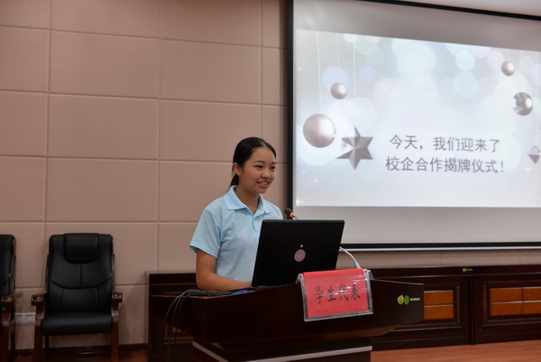 在乐礼与掌声中,广西中医学校吴彬校长、冼锦华书记与宝娜机构邓球英副总经理、技术总监陈玉芳女士共同为广西中医学校“广东江门宝娜美容美体连锁机构校企合作人才培养基地”揭牌!来自2015级首届宝娜美容美体的新生黄 奕同学代表全体学生表态:我们的青春是有限的,不能也不会在犹豫和观望中度过,惟有砥砺奋斗的青春才能为将来留下美好回忆,一定不负老师及家长的重望,共同努力,走出自己精彩的人生。