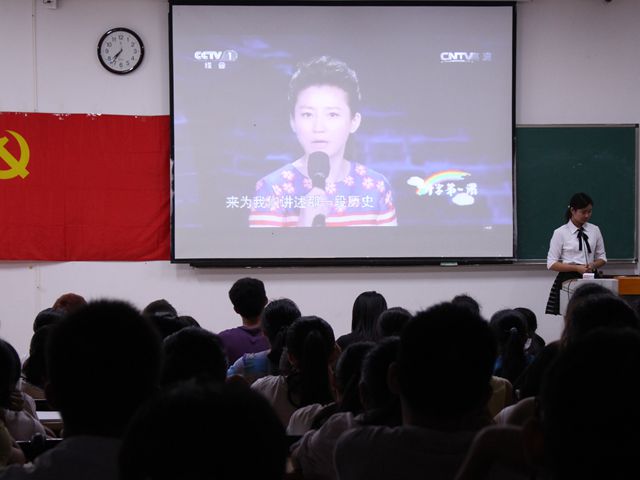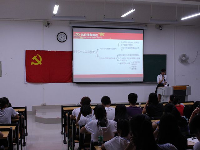 当晚七点整,同学们怀着激动的心走进了会场,走进了中国人民的抗战史。此次座谈会围绕“抗日战争的背景、回顾抗战峥嵘岁月、中国人民抗战胜利的法宝、广西人民英勇抗战历程、抗日战争胜利的伟大意义”五个部分展开讨论,同学们认真聆听主持人的讲解,聚精会神观看影片,积极讨论了抗战时期中国为何失败又为何能够在失败中找到出路的问题,并对我区人民的英勇抗战赞叹不已。同时,我们还观看了以纪念“抗日战争胜利暨反法西斯胜利70周年”为主题的《开学第一课》视频。