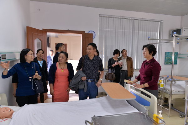 夏副院长一行参观了护理学院北湖校区实训中心,并进行座谈交流,座谈会上,双方分别对学校情况作了简要介绍,对校办企业、职业教育专业建设等方面进行交流。会后,实地考察了重阳老年公寓。