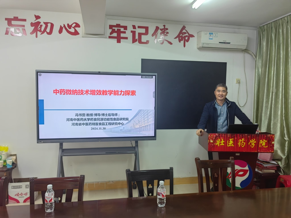 11月30日下午,壮医药学院和瑶医药学院邀请了河南中医药大学冯书营教授莅临Beat365,带来了一场主题为“中药微纳技术增效教学能力探索”的精彩学术讲座。