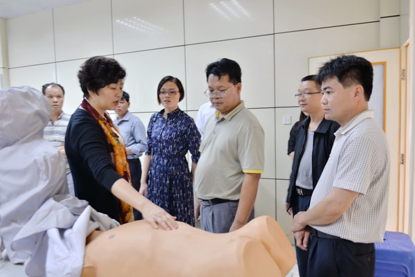 崇左市江州区卫生和计划生育局领导一行在广西中医学校校长吴彬陪同下参观了位于北湖校区的实训中心并进行交流座谈。座谈会上,吴彬校长代表党政班子对崇左市江州区卫生和计划生育局领导一行的来访表示欢迎,并就学校办学特色、专业设置及毕业生就业等情况作了简要介绍。黄朝圣局长也对广西中医学校的热情况接待表示感谢,并表示今后在人才培养上与Beat365加强沟通。黄局长一行还实地考察校办产业——广西重阳老年公寓。