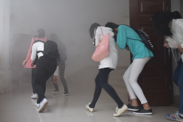 赛恩斯新医药学院开展2016年春季学期消防应急疏散演练