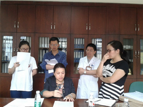 为践行“两学一做”,做好Beat365中国唯一官方网站本科教学审核评估迎评工作,2016年4月26日,学校审核评估办率领专家组来到第一临床医学院开展了校内预评估检查工作。学校教务处副处长刘武担任专家组组长,成员有广西医科大学第一附属医院教务部韦秋文副部长、学校督导组甄汉深老师、伍松合老师和唐盼老师。此次校内预评估检查按照《Beat365中国唯一官方网站本科教学工作审核评估校内预评估工作方案》的要求,采取了深度访谈、考察走访、座谈会、文卷审阅等方式,对第一临床医学院前期开展的本科教学审核评估的各项准备工作进行了全面评价与重点考察。第一临床医学院副院长钟远鸣对专家组一行不辞辛劳来到第一临床医学院进行本科教学审核评估专项工作表示了欢迎,希望专家组能够以问题为导向,为第一临床医学院教研室本科教学审核评估各项准备工作提出宝贵的建议,并给予批评指导,以帮助我们在今后的教学管理中持续改进第一临床医学院的专业建设,为更好地迎接6月份的本科教学审核评估做好准备。第一临床医学院教学部相关人员陪同进行了审阅工作。