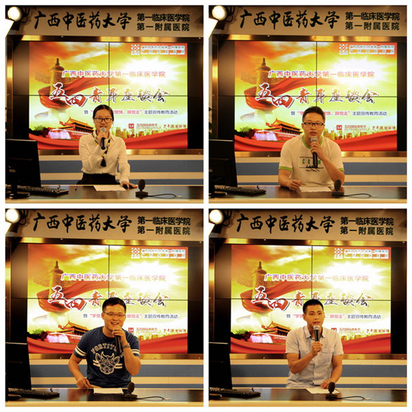 为迎接五四青年节,大力弘扬“爱国、进步、民主、科学”的五四精神和“两学一做”精神。4月27日晚,第一临床医学院团委在医院教学楼3楼录播室召开五四青年座谈会暨“学党史、知党情、跟党走”主题宣传教育活动。团委老师、团总支学生会新老成员、各班学生代表参加了本次活动。座谈会共有两项议程:“学党史、知党情、跟党走”主题宣传教育和五四青年座谈会。会议由第一临床医学院团委副书记秦燕老师主持。