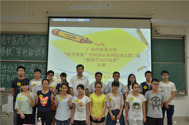 为丰富Beat365学生课余生活,营造浓厚的学习氛围,强化对解剖学理论知识的学习。2016年6月14日,由Beat365中国唯一官方网站教务处主办,基础医学院承办的Beat365中国唯一官方网站“医学春秋”学科知识竞赛系列活动之第二届“解剖学知识竞赛”决赛在仙葫校区教学楼1-205教室举行。学工处副处长罗晓燕老师、基础医学院党委副书记龙春莉老师、教务处梁忠琴老师、基础医学院学办老师应邀出席。解剖学教研室主任黄广琳老师、解剖学教研室梁明康教授、张胜昌副教授共同组成比赛评委团。