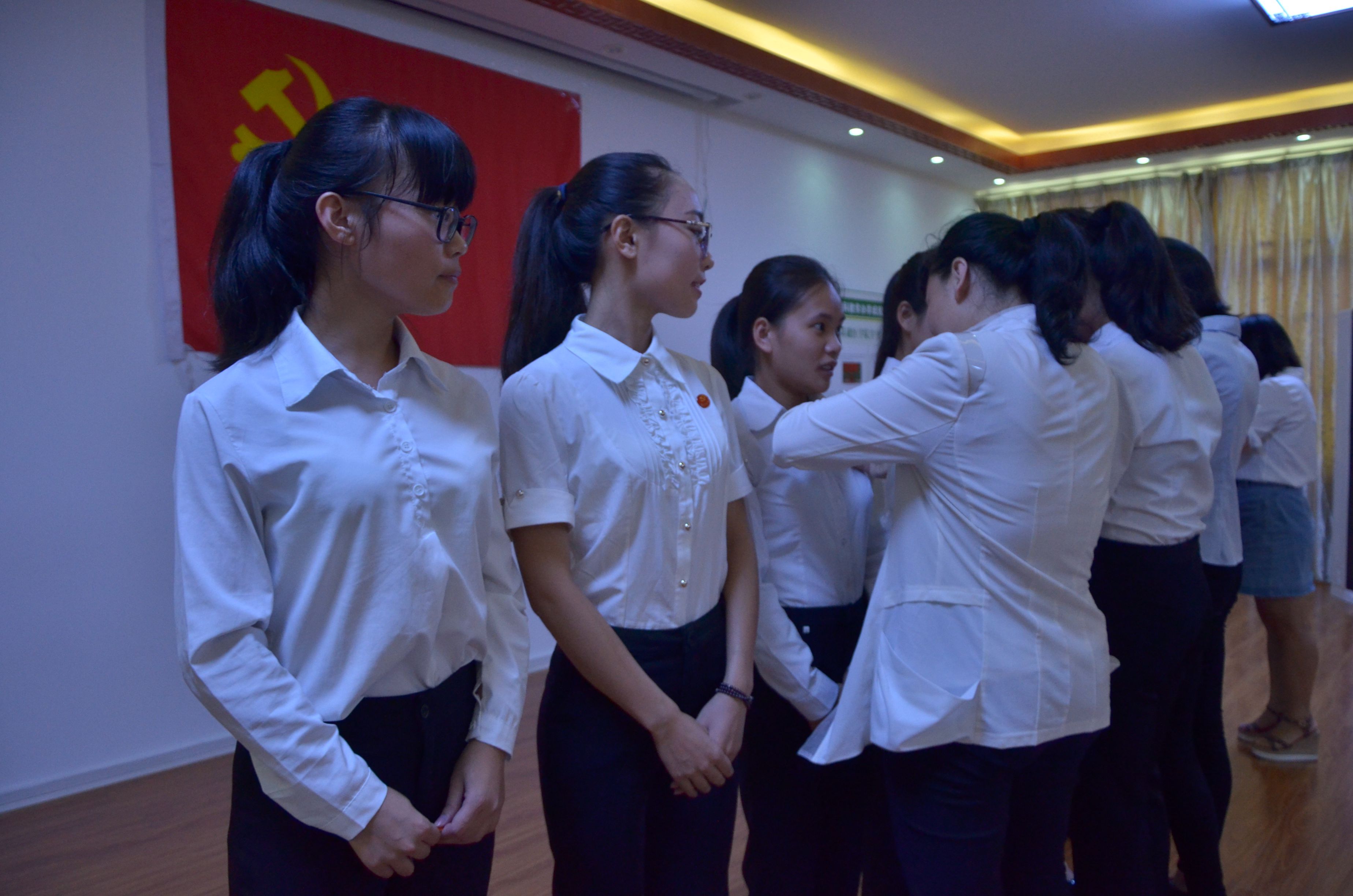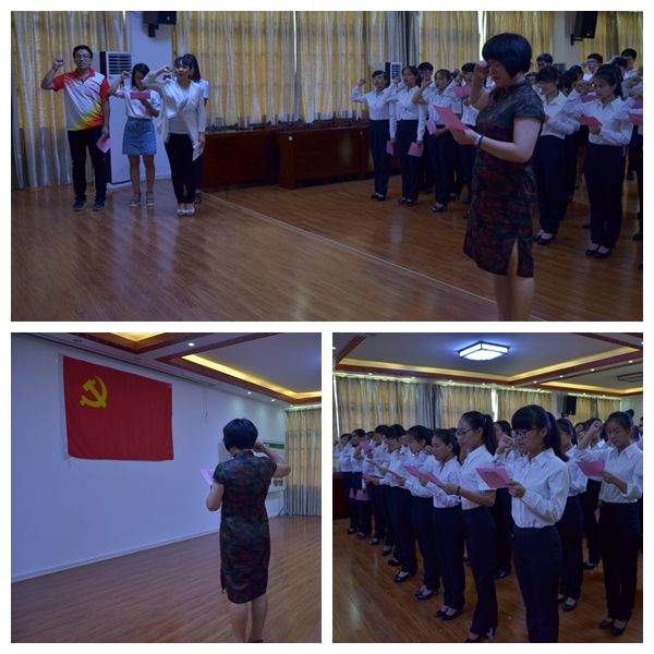 接下来主持人宣布新一批预备党员名单,希望他们今后以党员的标准严格要求自己,发挥先锋模范作用。随后,在鲜红的党旗下,杨美春带领全体党员进行入党宣誓,铿锵有力的宣誓充分显示了同志们的入党决心。